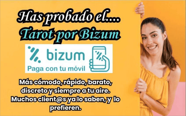 Tarot pago por VISA/Bizum. Llamada local en España, sin coste adicional añadido. IVA incluido. Servicio para +18 años.