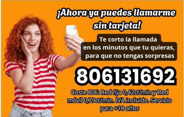 Pago por VISA/Bizum. Llamada local en España, sin coste adicional añadido. IVA incluido. Servicio para +18 años.